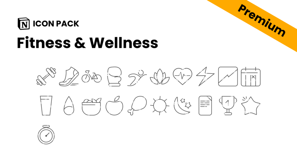 Bring clarity and motivation to your Notion templates with this exclusive set of 21 minimal fitness & wellness icons.