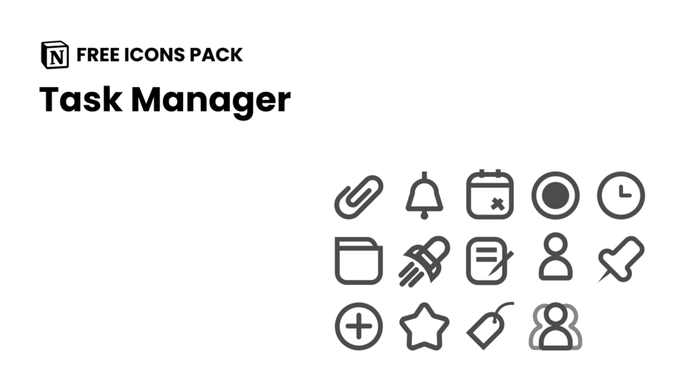 Upgrade your Notion templates or task manager dashboards with 14 clean, solid-color icons!